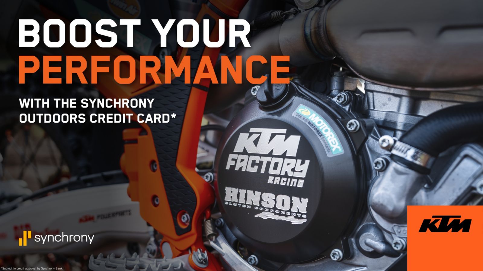 KTM North America, Inc. has partnered with Synchrony and is excited to offer the NEW Synchrony Outdoors Credit Card, designed to help qualified customers receive a financing solution when purchasing KTM Apparel, Technical Accessories, Spare Parts and WP Suspension products.
